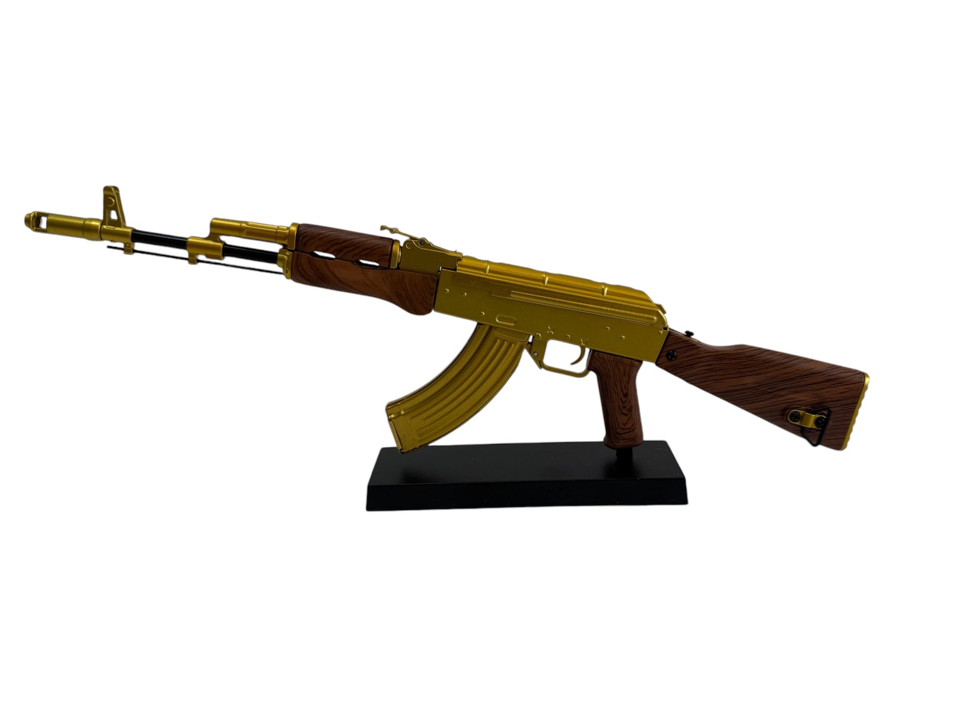 This die-cast AK-47 toy is a highly detailed replica of the legendary assault rifle, ideal for collectors and military enthusiasts alike. Crafted from durable die-cast metal, it boasts realistic features, including a movable magazine, stock, and barrel. Whether displayed as a part of your collection or used for imaginative play, this miniature AK-47 faithfully replicates the iconic design and rugged durability of the original firearm in a compact, collectible form. A must-have for fans of military history, toy weaponry, and tactical design!